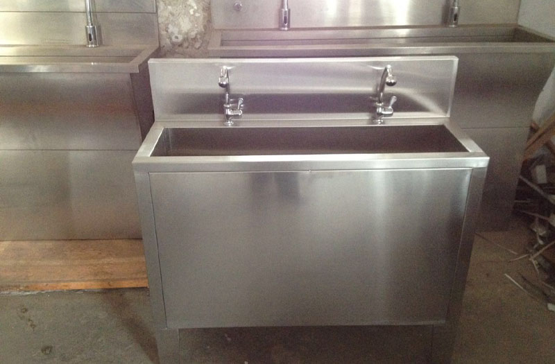 洗手池是手术医务人员洗手专用设备,采用人体感应自动给水,因此无需使用人员触摸,保证清洁,流量500l/h,采用0.1μm超滤膜,可将至毒病菌全部滤掉,同时采用双柱超滤组件,具备反冲技术,可长期使用。 特点: 1.整体采用不锈钢SUS304、1.2mm不锈钢双层制造,中间特殊静音处理。槽身以人体工程学设计,外观美观,且洗手时水花不会溅在身上。 2.鹅颈型水龙头,全自动感应或脚踏、腿部触碰几种给水方式,避免医护人员的手部碰触,有效防止洗手时的交叉感染。 3.配备40-50L热水器和恒温供水装置,水温可根据客户的使用习惯20°—75°自由设定。 4.水池内部采用圆弧角度、无缝焊接、深度打磨、抛光处理。无死角、易于清洁消毒处理,有效防止细菌滋生。 5.配套设备完善,配有自动给药机,照明灯及防雾整装镜辅助设备。 6.多种型号、多个系列产品可供客户选择,也可根据客户的使用要求生产加工。