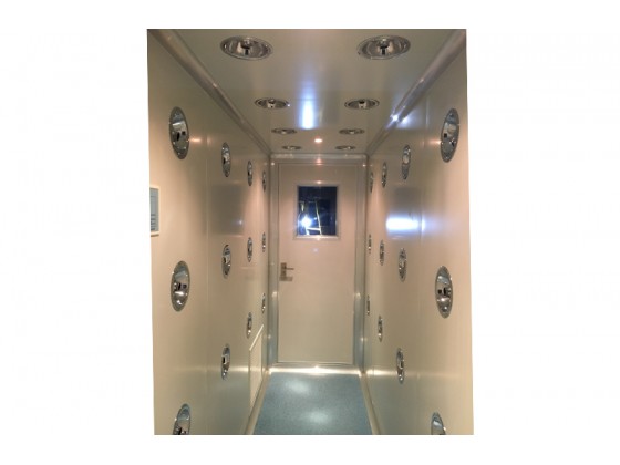 风淋室可以清除人身和物品表面附着的尘埃,减少带入洁净空气的灰尘量,同时起到兼有气闸室功能,可防止不洁净空气由门侵入,以配合洁净空调系统确保洁净室达到所需洁净度。