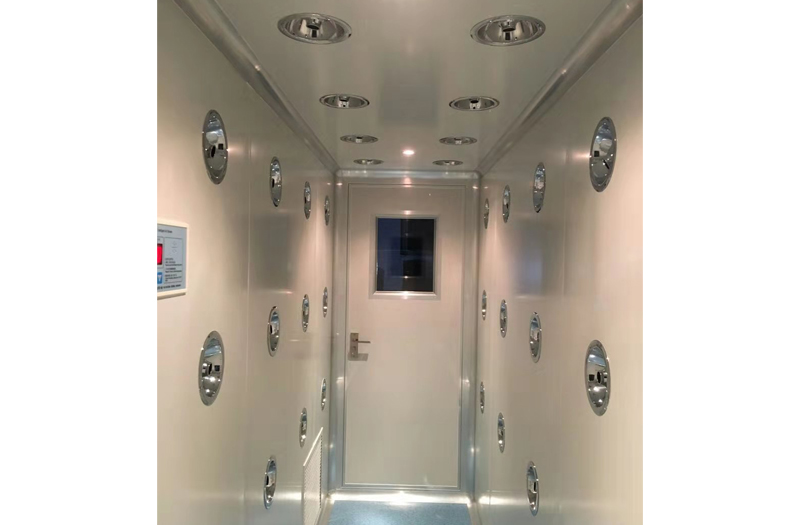 风淋室可以清除人身和物品表面附着的尘埃,减少带入洁净空气的灰尘量,同时起到兼有气闸室功能,可防止不洁净空气由门侵入,以配合洁净空调系统确保洁净室达到所需洁净度。
