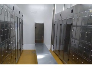 不锈钢消毒鞋柜 用不锈钢发热盘产生一定的温度,对鞋子底部进行加热,使鞋子底部温度升高,从而使鞋子内部的汗气缓慢挥发。 消毒鞋柜内还装有臭氧发生器(或紫外线杀菌灯)和低温电热元件以及微电脑控制系统,通过电脑控制,使鞋柜内产生合适浓度的臭氧,利用臭氧的化学特性,对鞋进行除臭和杀菌防霉护理;同时控制电热元件间断地工作,使鞋柜内维持一个合适的温暖的温度,缓慢地对鞋子进行烘干护理 规格:304不锈钢/紫外/抽风/20人,每格尺寸宽250*高300/独立门(平时关闭)强磁门吸/厚度1.0mm(实际厚度0.92mm) 下方开孔便于空气流通,施工含风管搭建,排风机功率180w=1台,电源220v,50hz,杀菌灯1*20w=8支