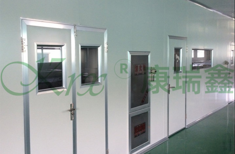 门采用净化密闭门,窗采用铝合金玻璃固定窗。