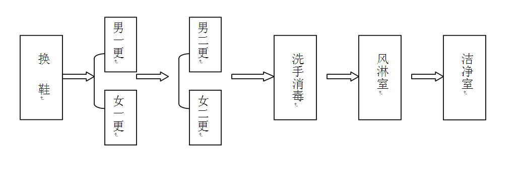 ➤ 换鞋、更衣、洗手、手消毒-->风淋通道-->洁净走廊-->洁净车间;