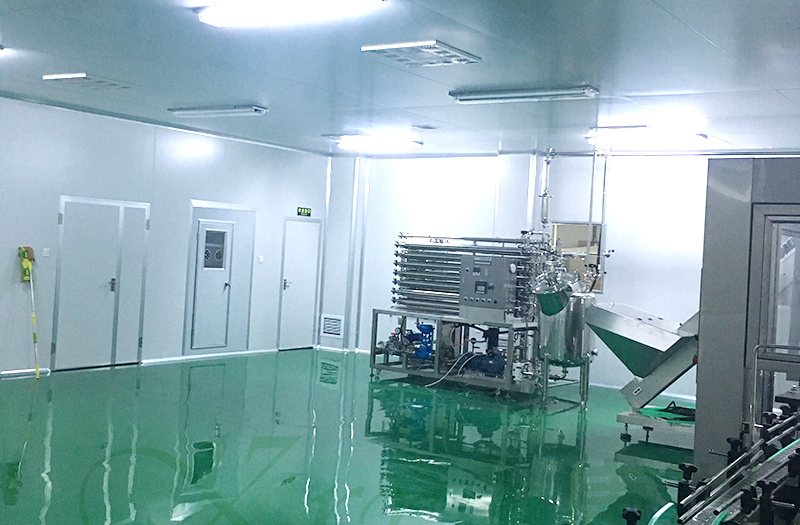 ➤ 间隔:用双面彩钢保温板围护及间隔,围护面到天花顶;洁净走廊及车间间隔处做通透净化专用窗或双层中空密封窗,尺寸约1200mm*900mm或根据甲方要求定,玻璃(有机玻璃)厚5mm、玻璃窗高平门高度(2100mm);铝合金窗料用特制净化材料,45度斜边,与地面及天花交角做元弧及阴角接口,符合规范及卫生消毒要求。