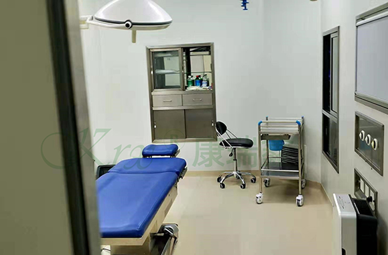 根据《医院洁净手术部建筑技术规范》,洁净手术室必须保证建筑的洁净环境,为防止交叉感染及积灰,吊顶、墙面、地面的装饰用材要求耐磨,不起尘、易清洗、耐腐蚀。随着科学的发展,能满足洁净手术室要求的新材料品种繁多,根据实际功能需要及财务能力,合理选择。可采用净化施工专用彩板,基板顶板采用宝钢、烨辉、冠州0.4-0.5的钢板,其内部夹芯填充(如硫氧镁、玻镁板、岩棉100kg/m3等,铝材采用专用铝型材(例如:白色氧化、磨砂白、灰白、喷塑电泳),为提高净化间的使用寿命,并达到美观大方的效果,高端铝型材进行电泳处理。